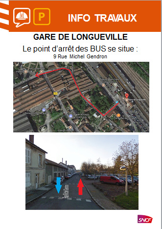 • LONGUEVILLE  : des travaux de voirie modifient l’itinéraire des bus et de leur point d’arrêt qui se situe : 9 rue Michel Gendron.