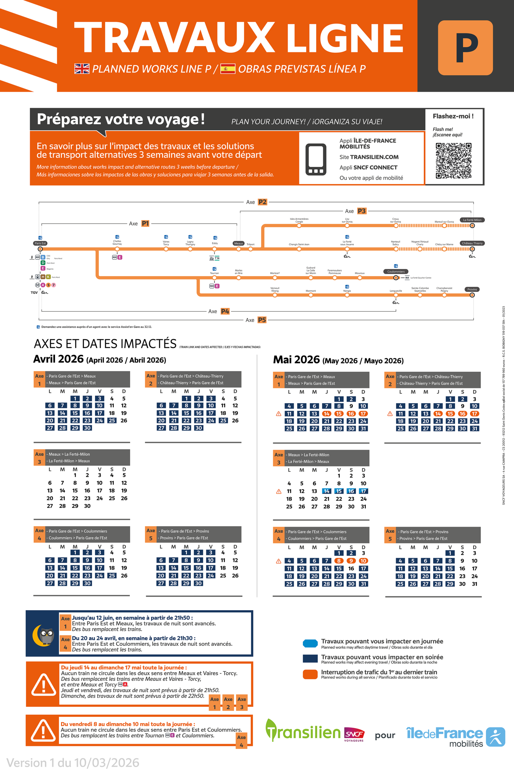 LIGNE P – AXE la ferté milon, axe château thierry, axe MEAUX, axe coulommiers et axe provins